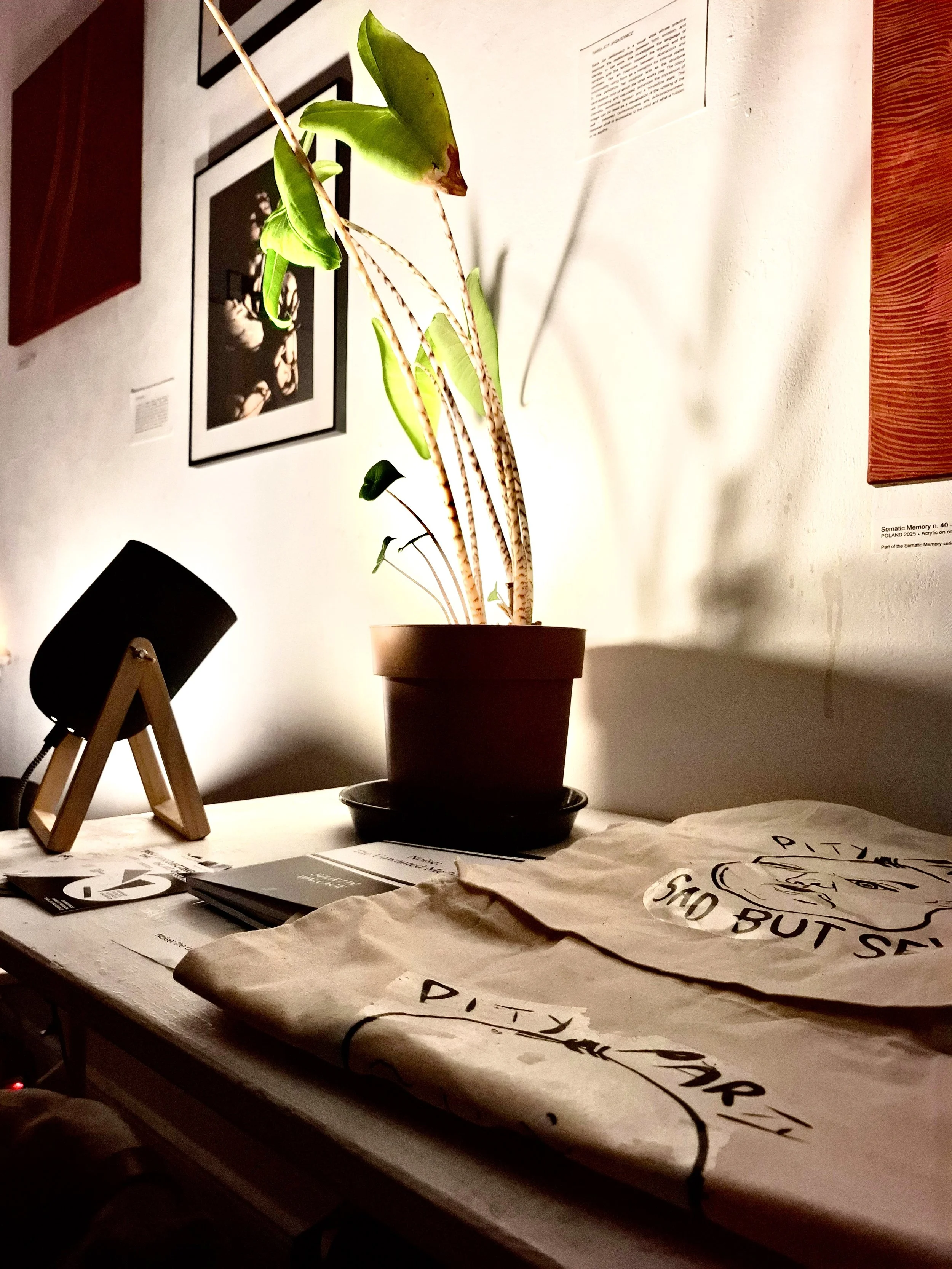 in november 2025 THE PITY ARTY TEAM waS BACK TO EMBRACE THE CHANGE IN SEASONS THROUGH A TEMPORAL 3-WAY INSTALLATION THAT INVESTIGATES FEELING THROUGH SOUND, PROJECTION AND SCULPTURE. 3 ARTISTS OF 3 NATIONALITIES COME TOGETHER IN THE BACKHAUS PROJECTS SPACE TO LAYER-UP FOR A 14 MINUTE SONIC/VISUAL LOOP THAT EXPLORES AND EMBRACES EMOTIONS AND OUR PERCEPTION OF THEM.